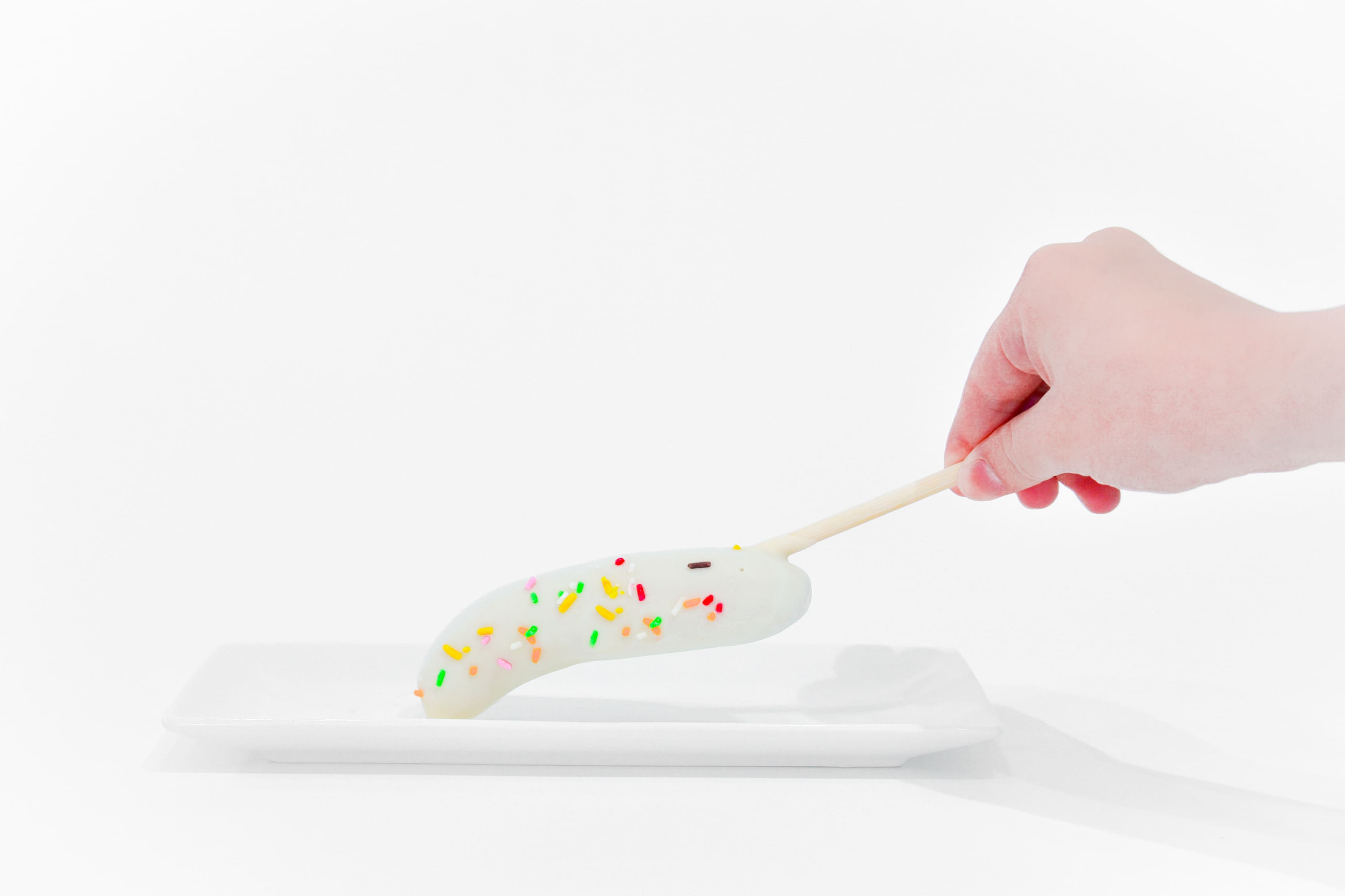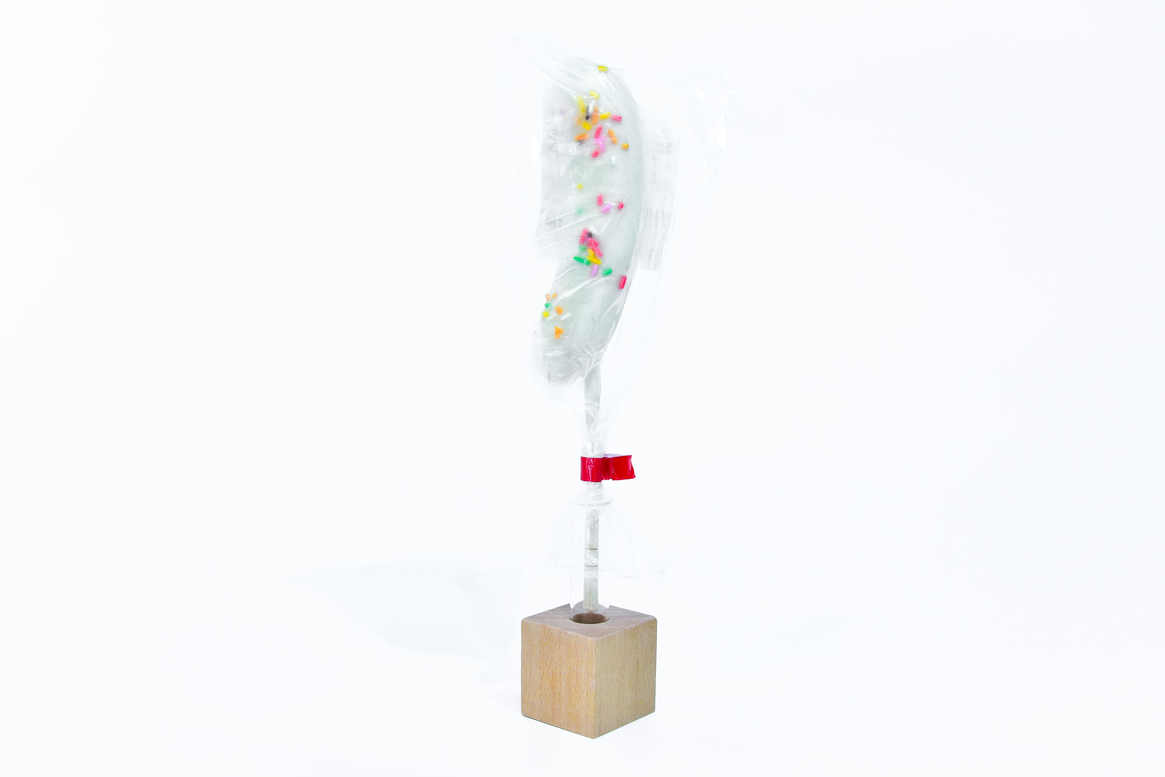 新鮮なバナナに濃厚なホワイトチョコレートをコーティングして冷凍しております。提供しやすい様に個包装しています。