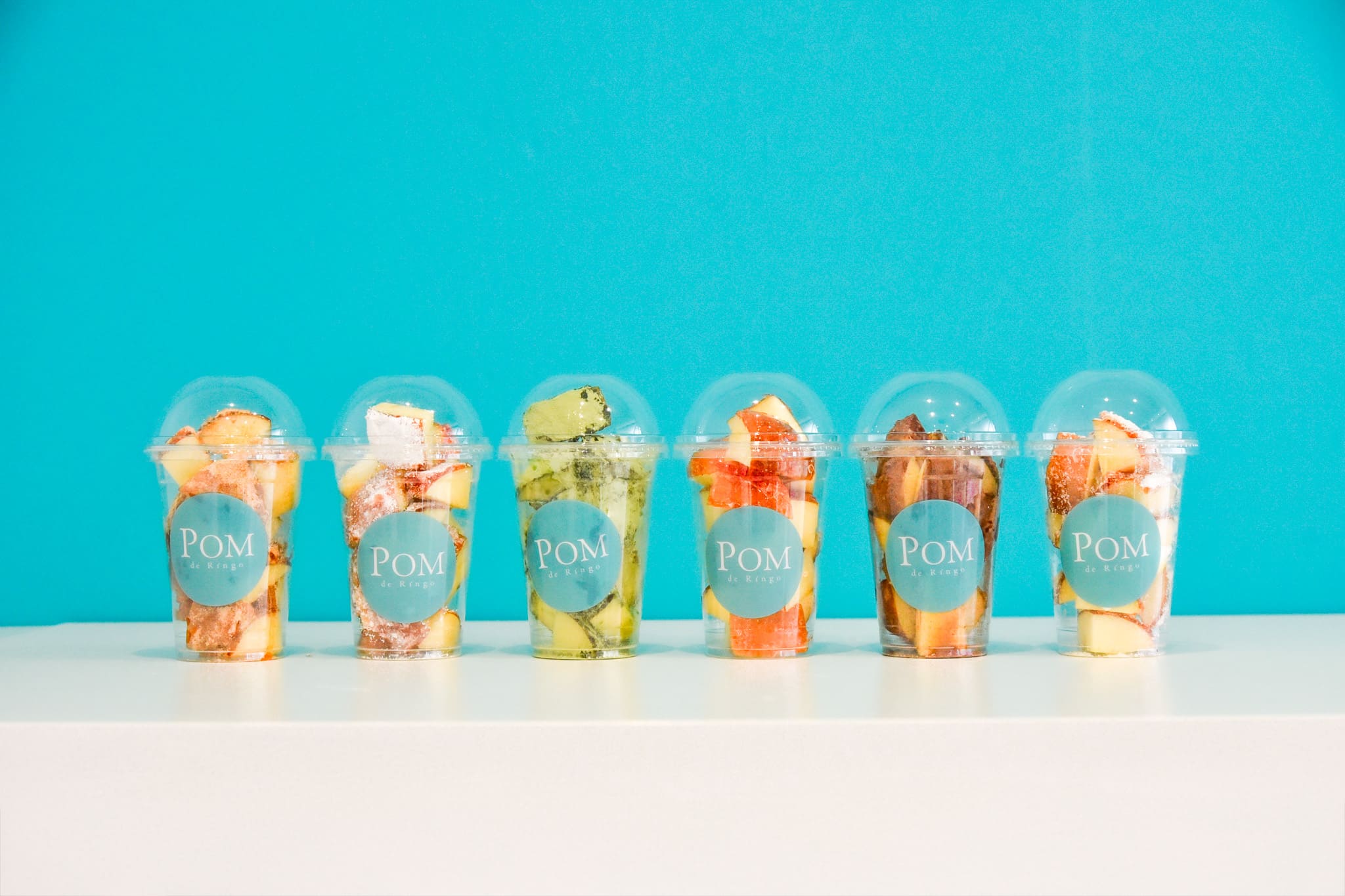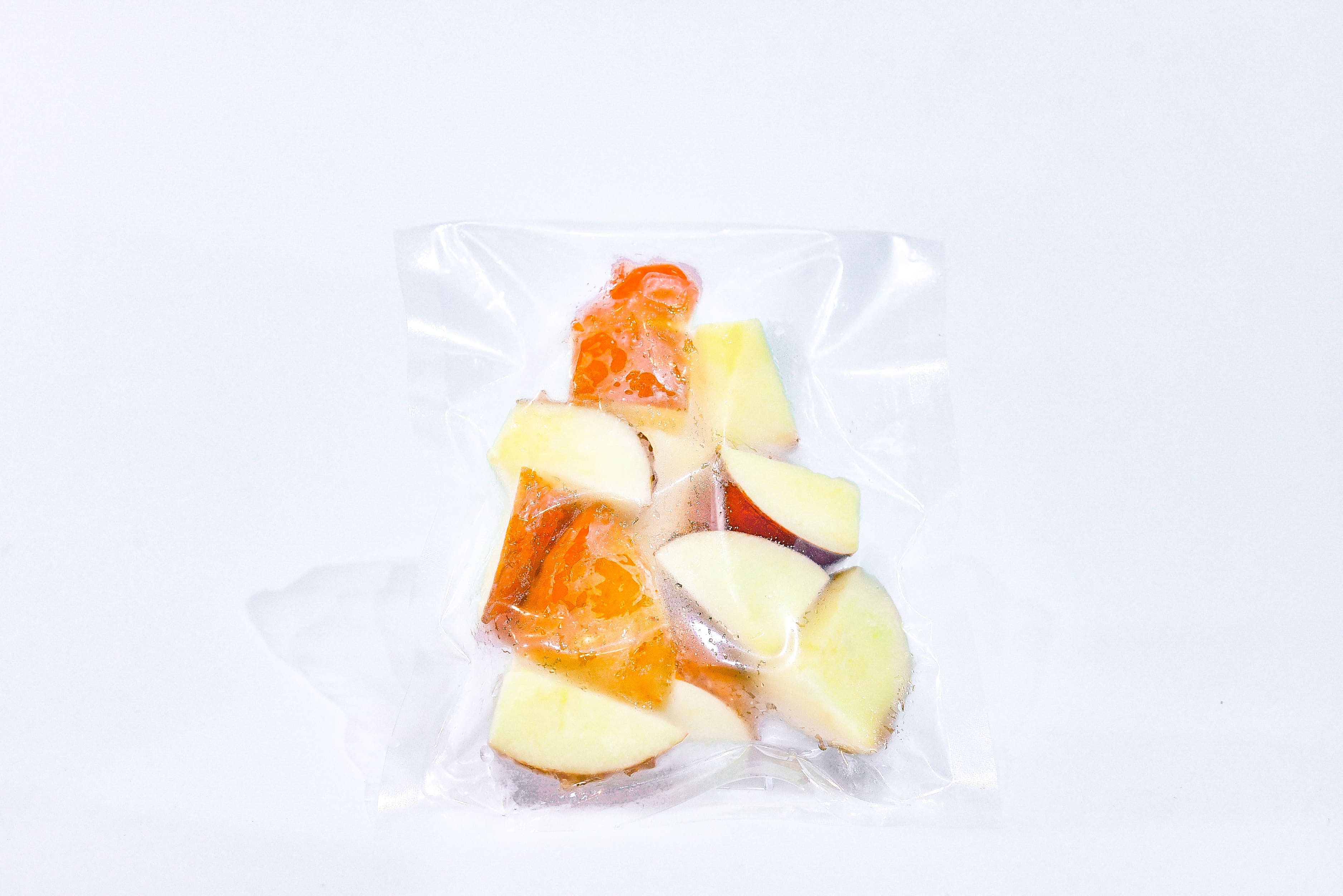 産地直送のフレッシュ林檎に飴をまとわせた後、食べやすい大きさにカットし、特殊急速冷凍をしています。